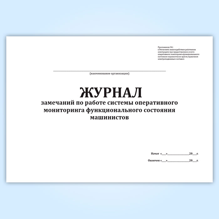 Журнал замечаний по работе системы оперативного мониторинга функционального состояния машинистов в Твери купить