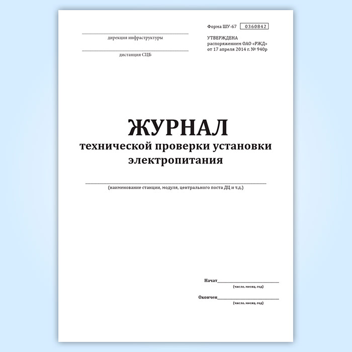 Журнал технической проверки установки электропитания (форма ШУ-67) в Твери купить