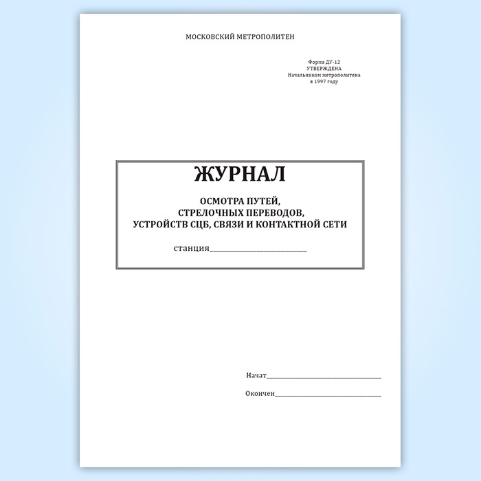 Журнал осмотра путей, стрелочных переводов, устройств СЦБ, связи и контактной сети (форма ДУ-12) в Твери купить