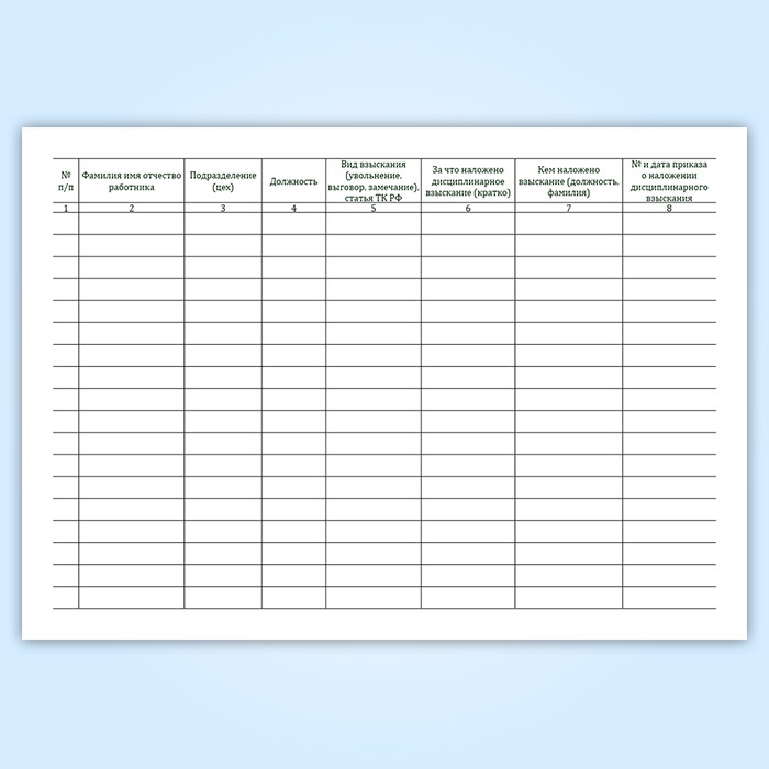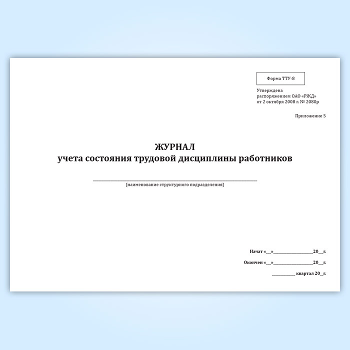 Журнал учета состояния трудовой дисциплины работников (форма ТТУ-8) в Твери купить