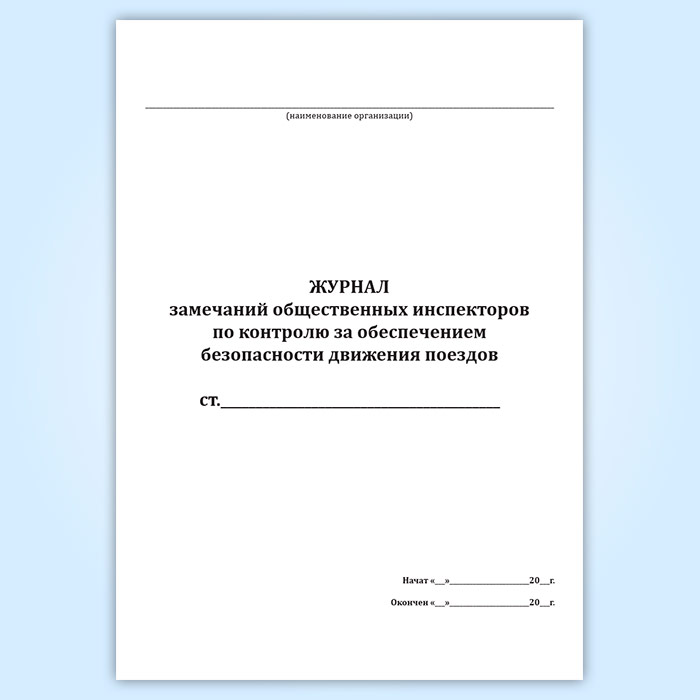 Журнал замечаний общественных инспекторов по контролю за обеспечением безопасности движения поездов в Твери купить