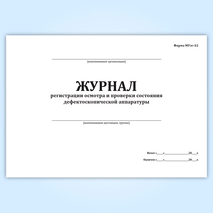 Журнал регистрации осмотра и проверки состояния дефектоскопической аппаратуры (форма МУэс-32) в Твери купить