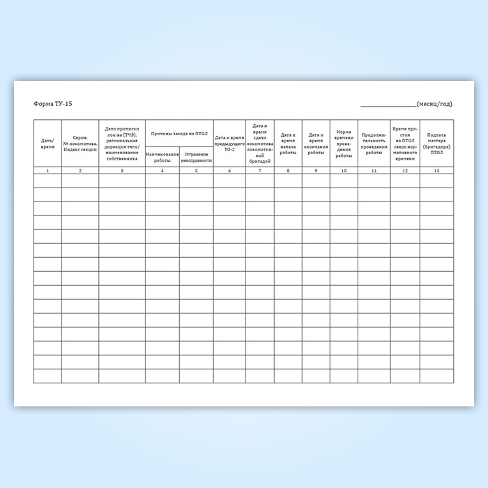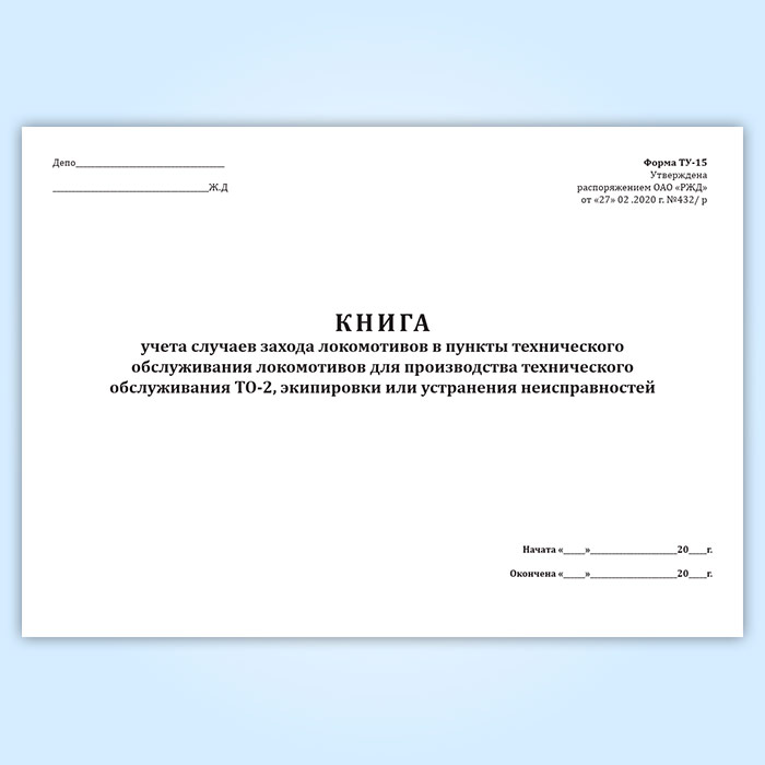 Книга учета случаев захода локомотивов в пункты технического обслуживания локомотивов для производства технического обслуживания ТО-2, экипировки или устранения неисправностей (форма ТУ-15) в Твери купить