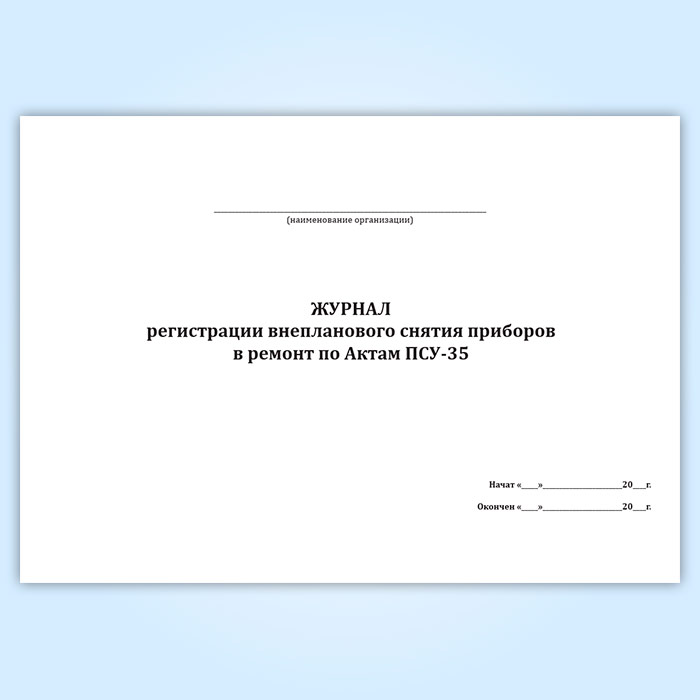 Журнал регистрации внепланового снятия приборов в ремонт по Актам ПСУ-35 в Твери купить