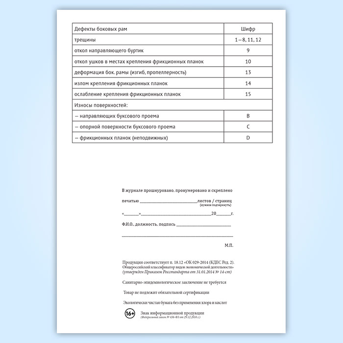 Журнал учета результатов осмотра и дефектоскопирования боковых рам тележек грузовых вагонов в Твери купить