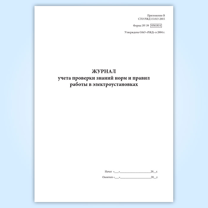 Журнал учета проверки знаний норм и правил работы в электроустановках (форма ЭУ-39) в Твери купить