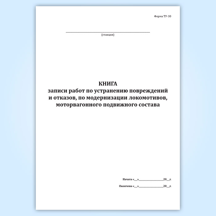 Книга записи работ по устранению повреждений и отказов, по модернизации локомотивов, моторвагонного подвижного состава (форма ТУ-30) в Твери купить