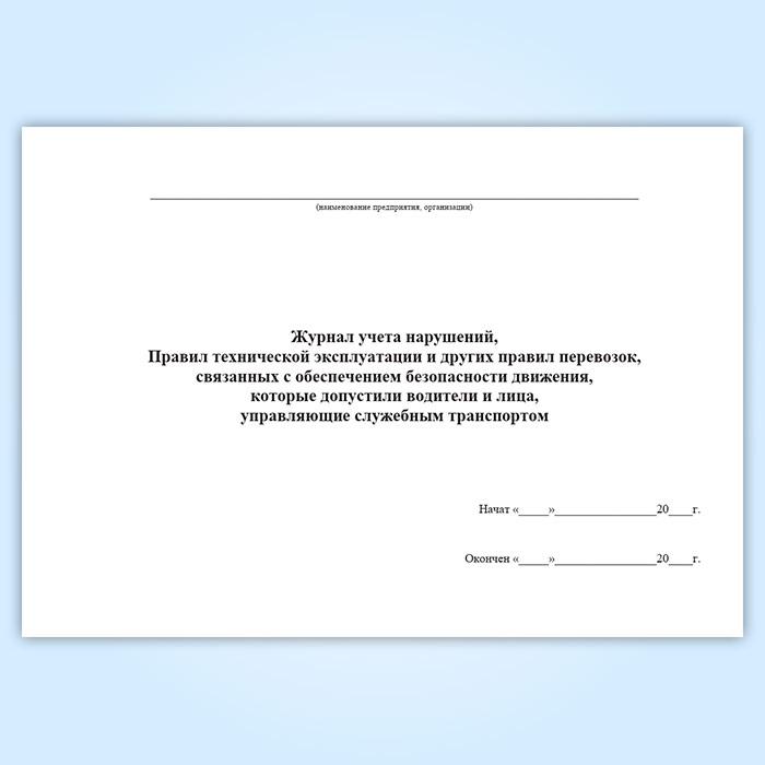 Журнал учета нарушений, правил технической эксплуатации и других правил перевозок, связанных с обеспечением безопасности движения, которые допустили водители и лица, управляющие служебным транспортом в Твери купить