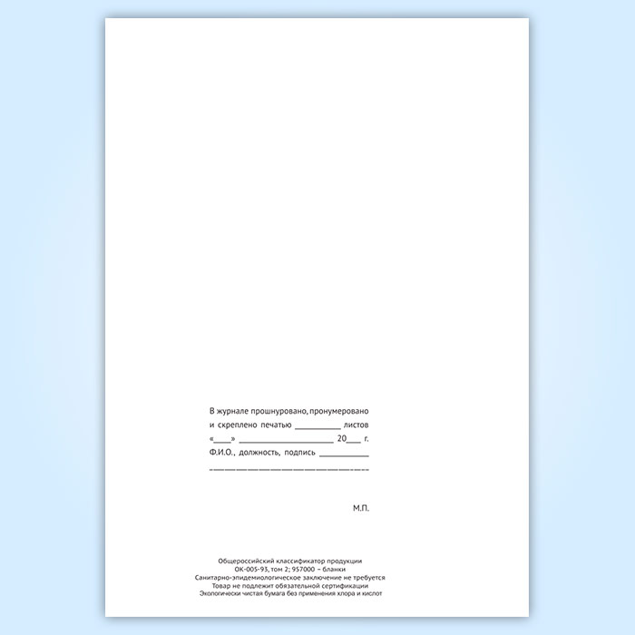 Вы получаете печатную продукцию прошнурованной и c местом для вашей печати в соответствии с действующими нормативными документами:
