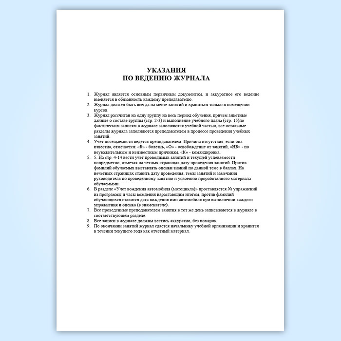 Журнал учета занятий по подготовке водителей транспортных средств категории «В» в Твери купить