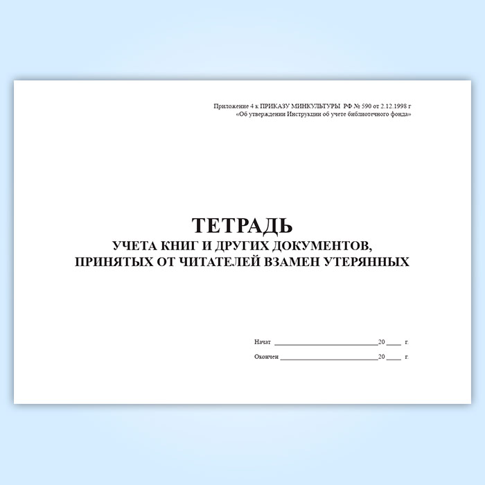 Тетрадь учета книг и других документов, принятых от читателей взамен утерянных в Твери купить