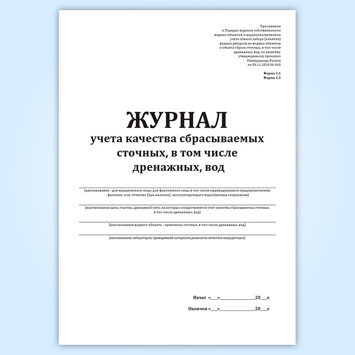 Журнал учета качества сбрасываемых сточных, в том числе дренажных, вод (форма 2.1, 2.2) в Твери купить