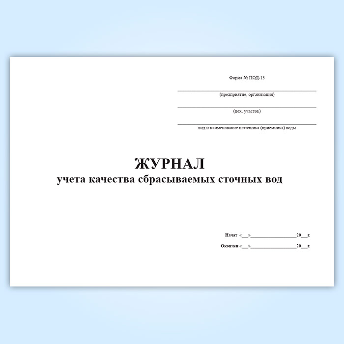 Журнал учета качества сбрасываемых сточных вод (форма ПОД-13) в Твери купить