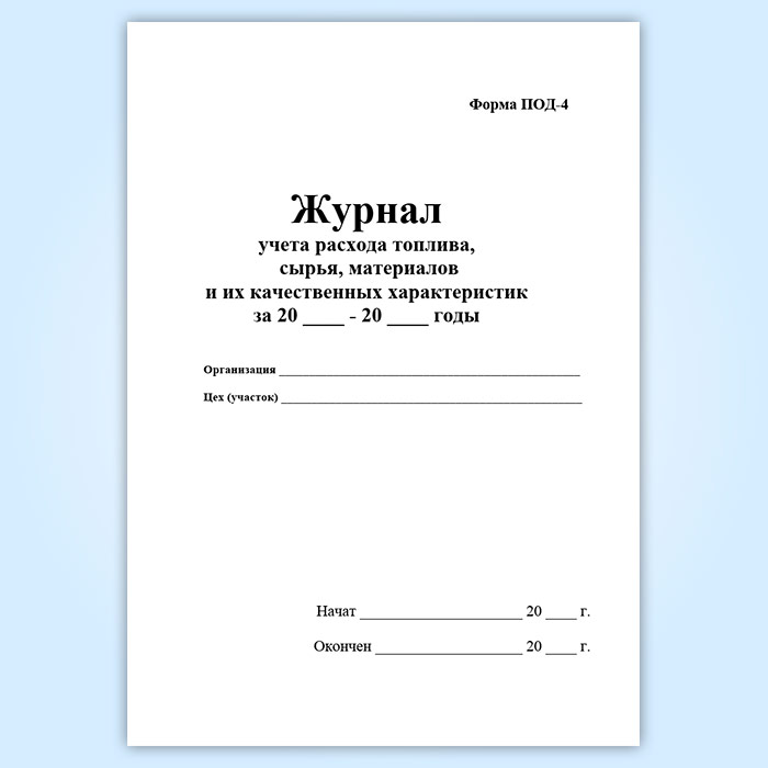 Журнал учета расхода топлива, сырья, материалов и их качественных характеристик (форма ПОД-4) в Твери купить