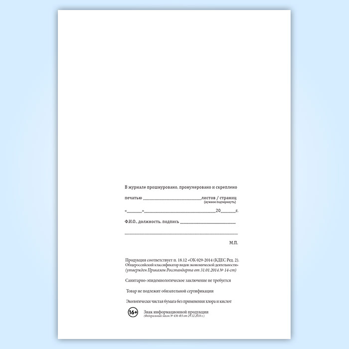 Вы получаете печатную продукцию прошнурованной и c местом для вашей печати в соответствии с действующими нормативными документами:
