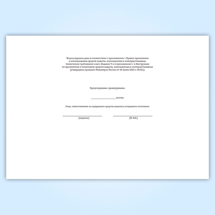 Журнал учета и содержания средств защиты (используемых в электроустановках) в Твери купить