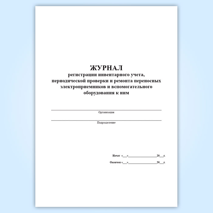 Журнал регистрации инвентарного учета, периодической проверки и ремонта переносных электроприемников и вспомогательного оборудования к ним в Твери купить