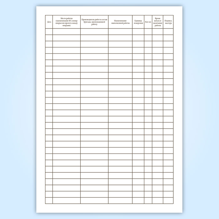 Журнал учета работ на ВЛ электропередачи напряжением 0,38-20 кВ в Твери купить