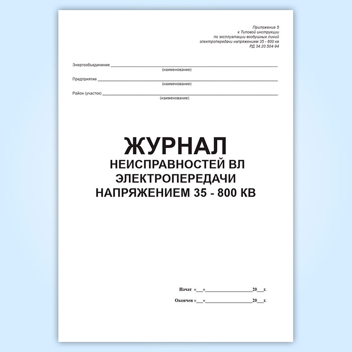 Журнал учета работ на ВЛ электропередачи напряжением 35-800 квВ в Твери купить