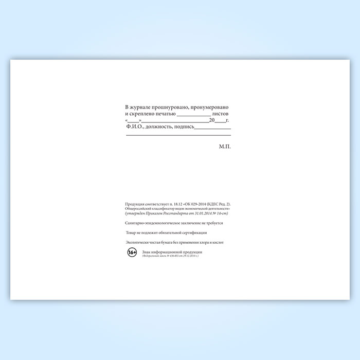 Вы получаете печатную продукцию прошнурованной и c местом для вашей печати в соответствии с действующими нормативными документами: