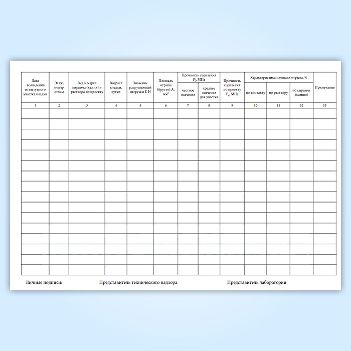 Журнал контрольных испытаний прочности сцепления в кладке на строительной площадке в Твери купить