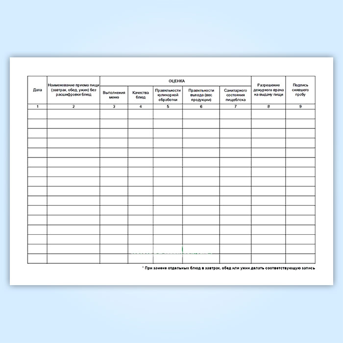 Журнал контроля за качеством готовой пищи (бракеражный журнал) в Твери купить