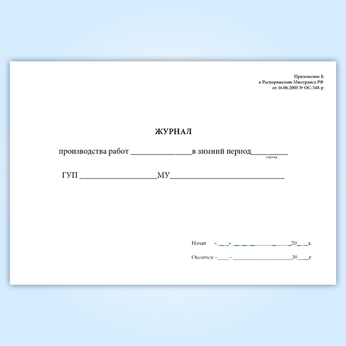 Журнал производства работ в зимний период, выполненных за время дежурства в Твери купить