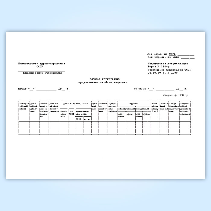 Журнал регистрации кумулятивных свойств вещества (форма № 340-у) в Твери купить