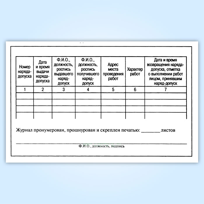 Журнал регистрации наряд-допусков на производство газоопасных работ в Твери купить