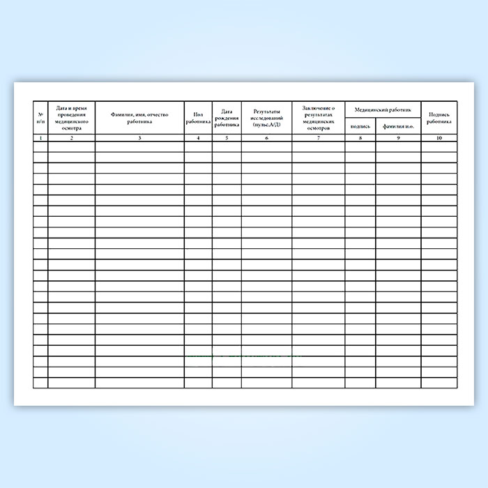 Журнал регистрации предрейсовых, предсменных медицинских осмотров (Приказ Минздрава РФ от 15 декабря 2014 г. N 835н) в Твери купить