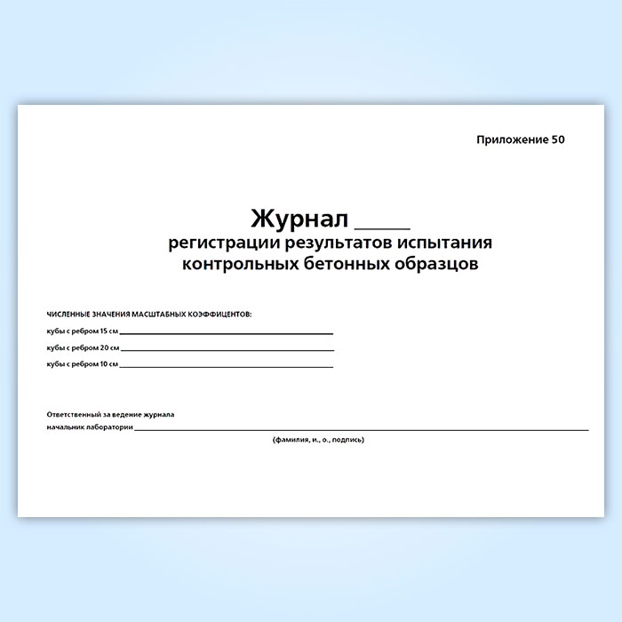 Журнал регистрации результатов испытания контрольных бетонных образцов в Твери купить