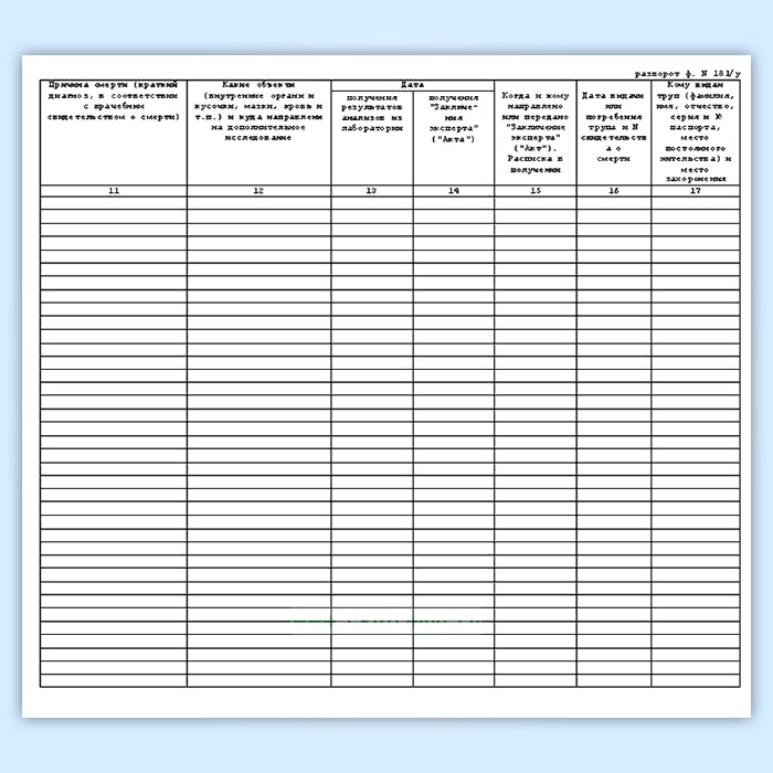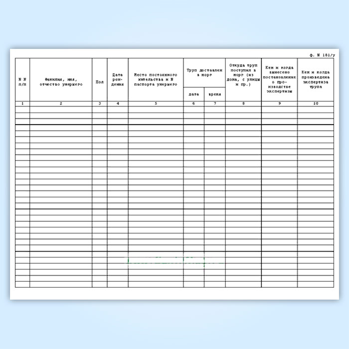 Журнал регистрации трупов в судебно-медицинском морге (форма 181у) в Твери купить