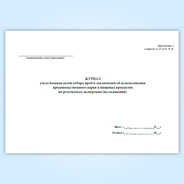 Журнал учета бланков отбора проб и заключений об использовании продовольственного сырья и пищевых продуктов в Твери купить