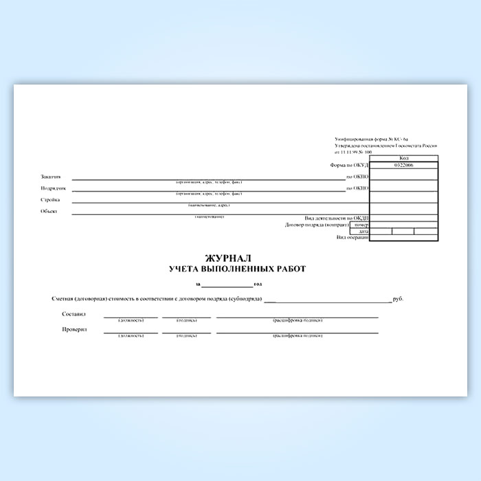 Журнал учета выполненных работ (форма КС-6а) в Твери купить
