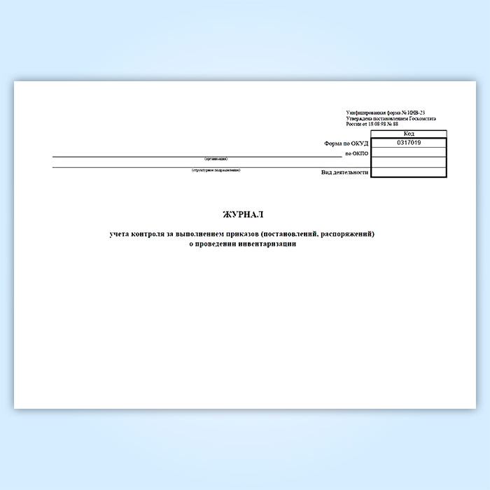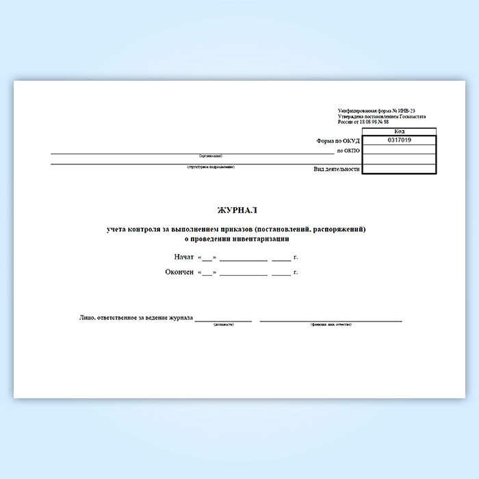 Журнал учета контроля за выполнением приказов (постановлений, распоряжений) о проведении инвентаризации (унифицированная форма ИНВ-23) в Твери купить