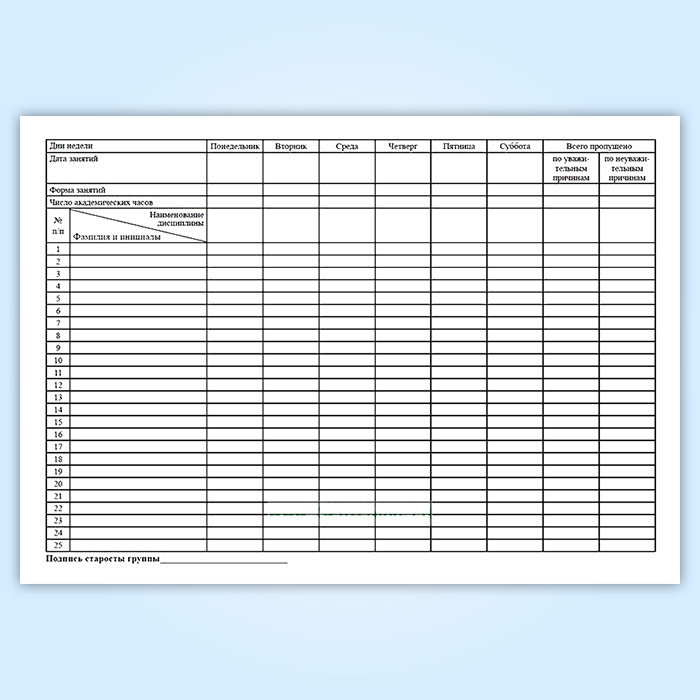 Журнал учета посещения занятий студентами в Твери купить