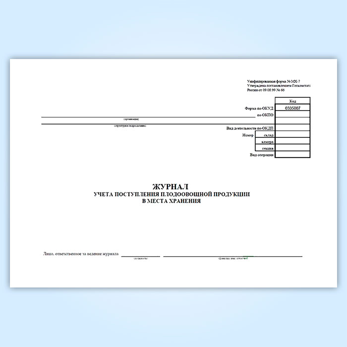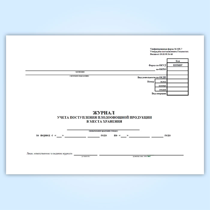 Журнал учета поступления плодоовощной продукции в места хранения (форма МХ-7) в Твери купить