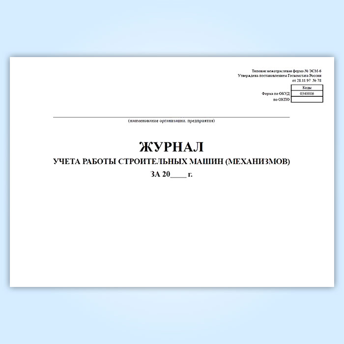 Журнал учета работы строительных машин (механизмов) (форма ЭСМ-6) в Твери купить