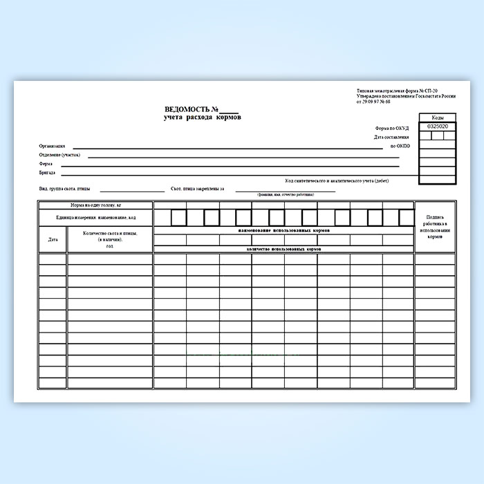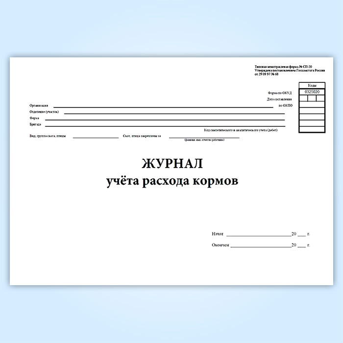 Журнал учета расхода кормов (форма № СП-20) в Твери купить