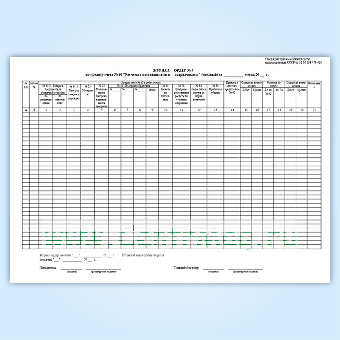 Журнал-ордер № 5 по кредиту счета № 60 «Расчеты с поставщиками и подрядчиками» (сводный) в Твери купить