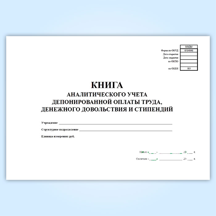 Книга аналитического учета депонированной заработной платы, денежного довольствия и стипендий (код формы 0504048) в Твери купить