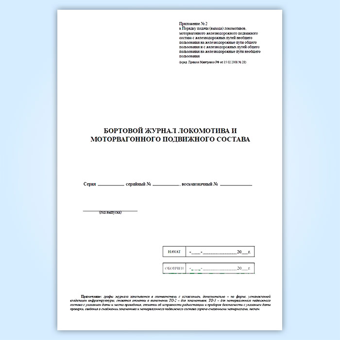 Бортовой журнал локомотива и моторвагонного подвижного состава в Твери купить