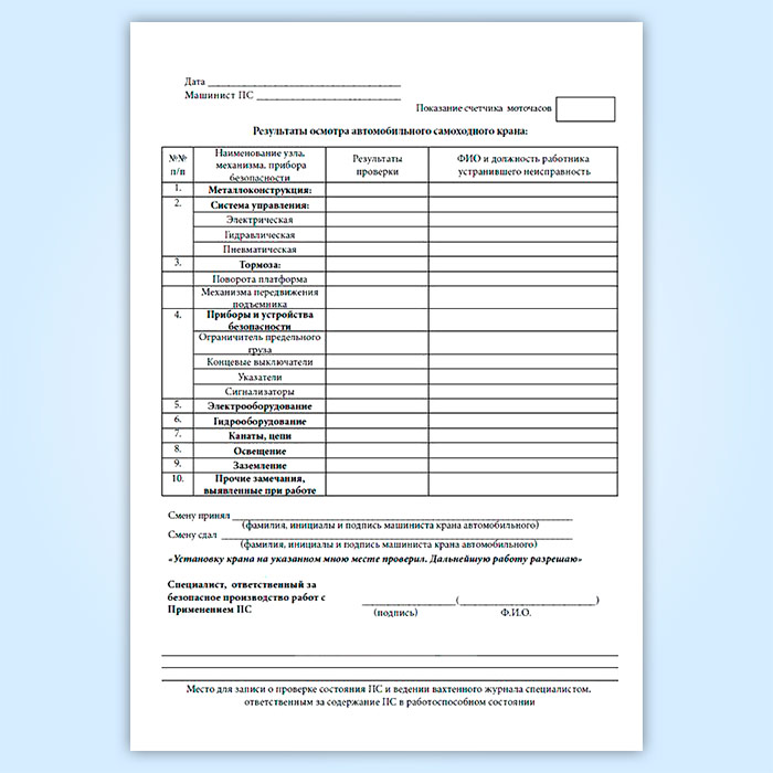 Вахтенный журнал машиниста автомобильного стрелового крана в Твери купить