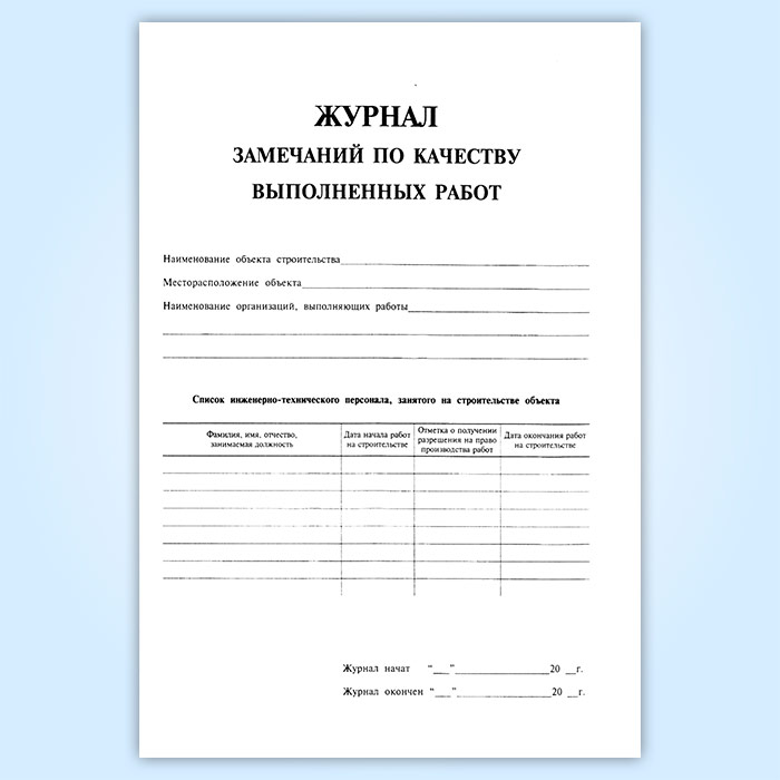 Журнал замечаний по качеству выполненных работ в Твери купить