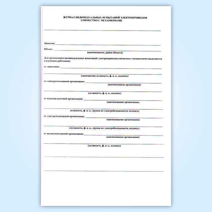 Журнал индивидуальных испытаний электроприводов совместно с механизмами в Твери купить