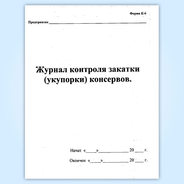 Журнал контроля закатки (укупорки) консервов (форма К-6) в Твери купить