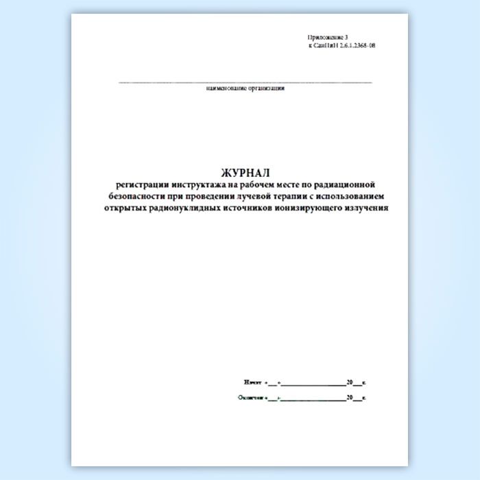 Журнал регистрации инструктажа на рабочем месте по радиационной безопасности при проведении лучевой терапии с использованием открытых радионуклиидных источников ионизирующего излучения в Твери купить