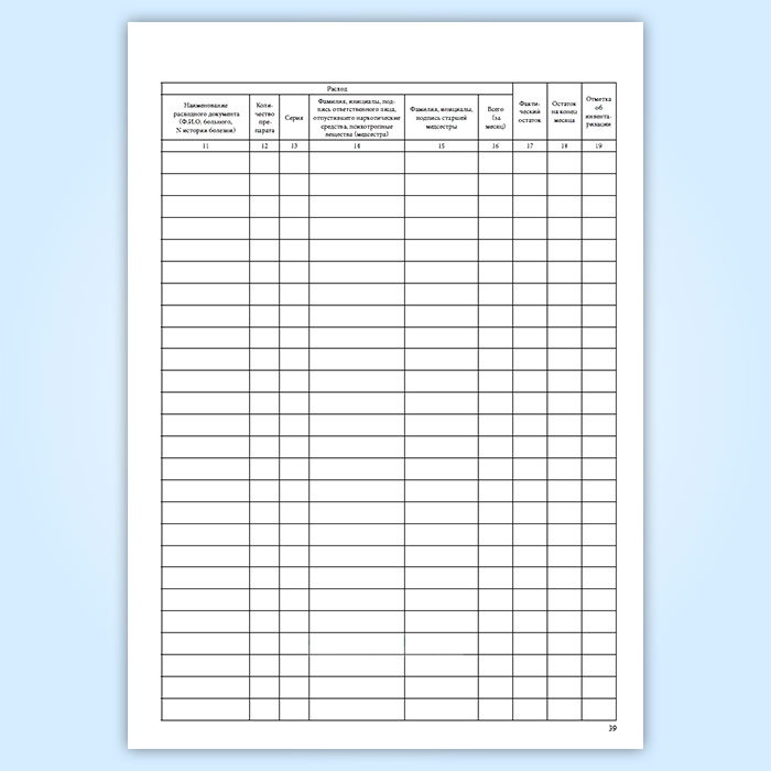 Журнал регистрации операций, связанных с оборотом наркотических средств и психотропных веществ дежурной (процедурной) медицинской сестры в стационарном отделении медицинской организации в Твери купить
