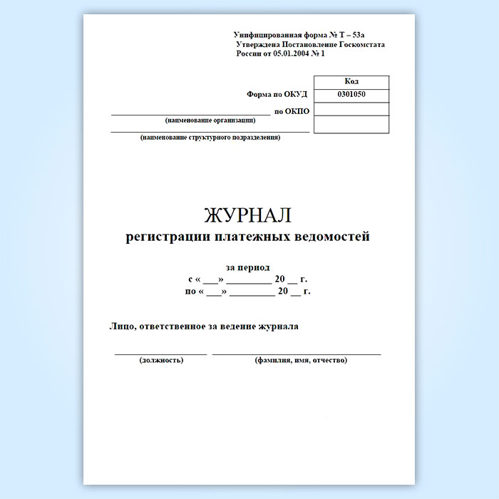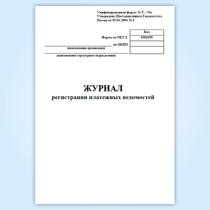 Журнал регистрации платежных ведомостей (унифицированная форма № Т-53а, форма по ОКУД 0301050) в Твери купить