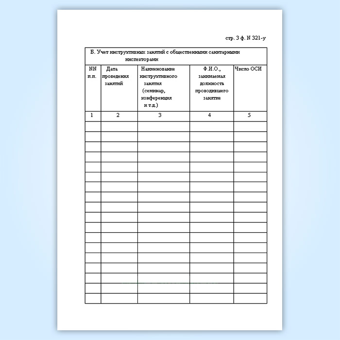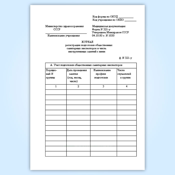 Журнал регистрации подготовки общественных санитарных инспекторов и числа инструктивных занятий с ними (форма № 321-у) в Твери купить